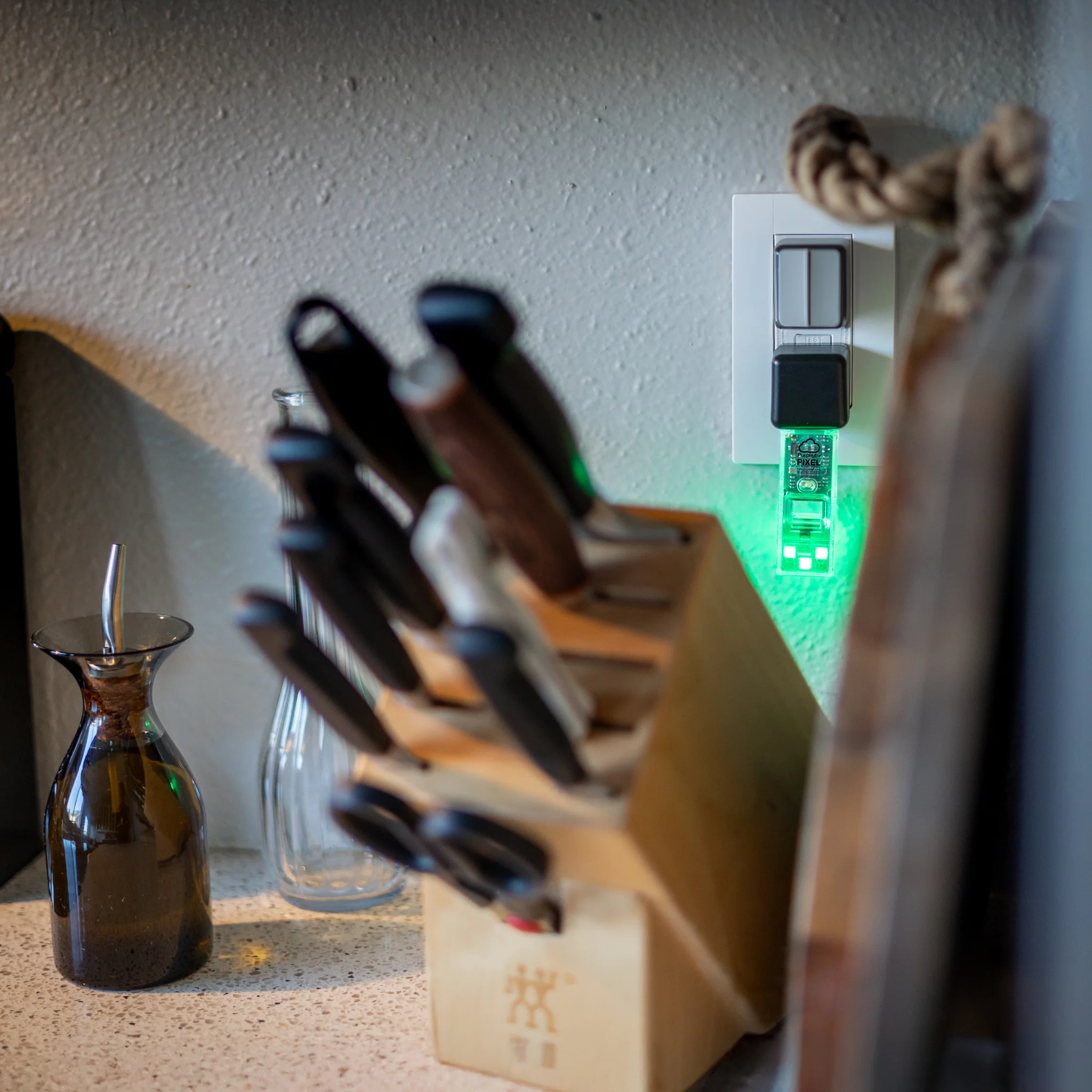 Мултиколорните LED светла се осветлуваат во боја според AQI (Индекс на квалитет на воздухот), овозможувајќи моментално и визуелно читање на нивото на честички (PM2.5) во воздухот.